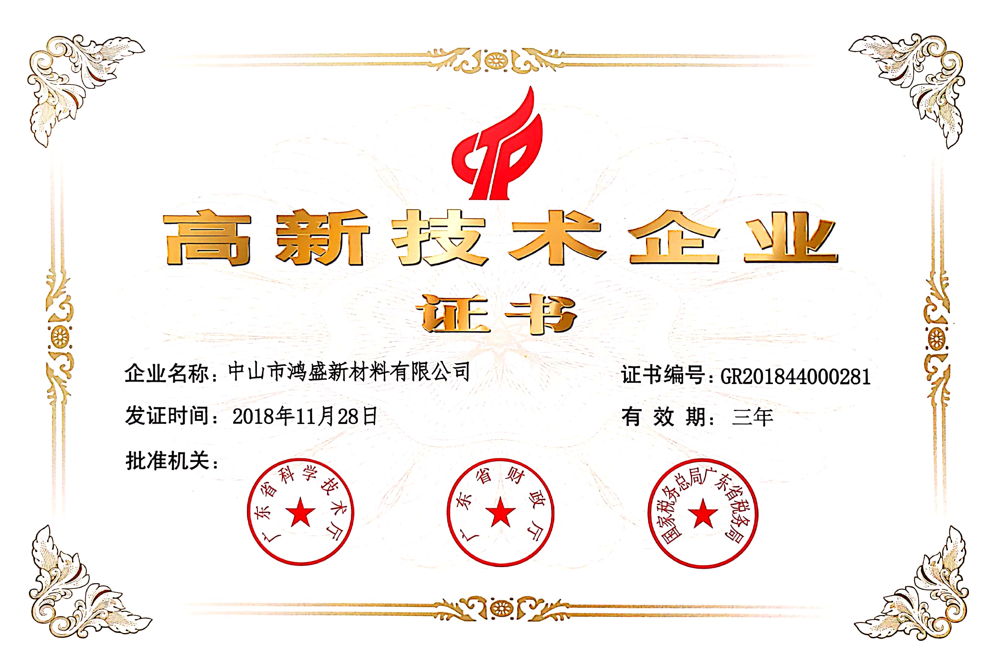 鴻盛實(shí)用新型專利證書