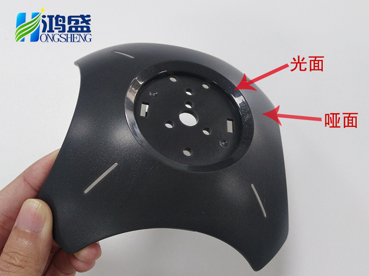 從產品背面可以看到,該產品的結構還是比較復雜的,螺絲柱+孔洞+筋位同時并存,這樣的產品結構通常來說對免噴涂工藝是很不友好的,容易因此產生流痕熔接線而大大影響美觀。而鴻盛的鐵灰色免噴涂應用在這樣的產品上能達到這樣的效果質感,也反映了我們鴻盛在專注免噴涂這條道路上還是取得了一定成績的。