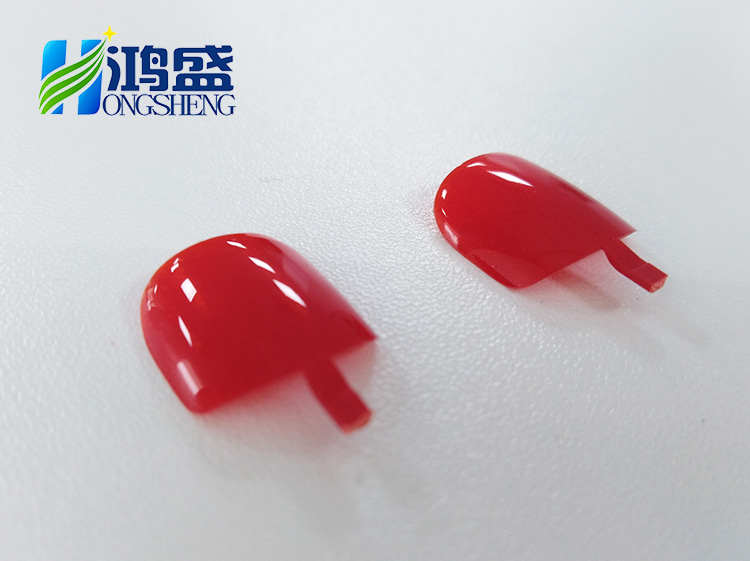 廣東佛山市一家生產指甲貼的企業,原先采用傳統塑料+色母生產指甲貼,但是這樣生產出來的指甲貼一直存在一個問題:不夠光亮,而且質感不夠接近真實指甲涂出來的質感。因此這位客戶找到了我們鴻盛,想通過免噴涂塑料解決這個問題,鴻盛配合該公司,提供了一款適合他們的免噴涂塑料(編號:AM10R111)。