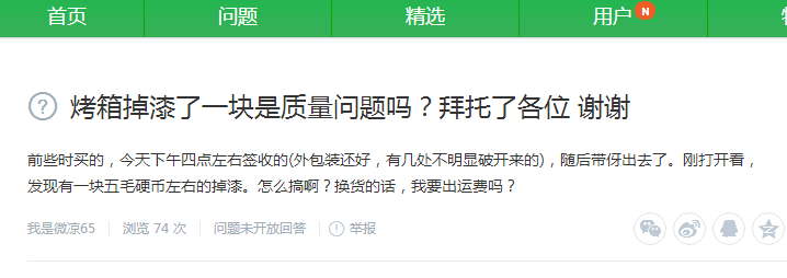 不過黑色解決了耐臟的問題,還有一個(gè)讓買家憂慮的問題卻是顏色不能解決的,那就是產(chǎn)品外殼的掉漆問題,有些買家甚至反應(yīng)產(chǎn)品剛買來(lái)就存在掉漆問題。(下面截圖來(lái)自百度知道)