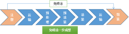 創(chuàng)新推動(dòng)發(fā)展,而免噴涂塑料,無疑也是塑料注塑領(lǐng)域的一種創(chuàng)新突破。傳統(tǒng)的塑料注塑流程是很繁瑣的,大致分為以下圖片箭頭的幾個(gè)環(huán)節(jié)。
