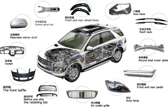 2、ABS、ASA:主要應用于汽車格柵、后視鏡等部位