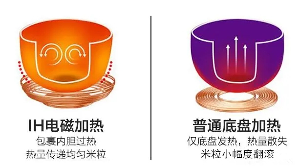 IH電飯煲:通過電磁線圈接通交變電流對內膽進行加熱,這樣可以使煮出來的米飯顆粒感更明顯,口感香甜軟糯,目前主要包括IH電磁加熱和壓力IH電磁加熱。