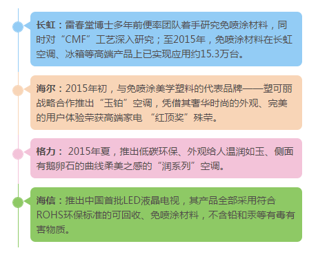 為迎合消費者對美的追求,國內知名家電企業對家電外觀設計、視覺美感、輕量功能化及低碳環保愈發重視。
