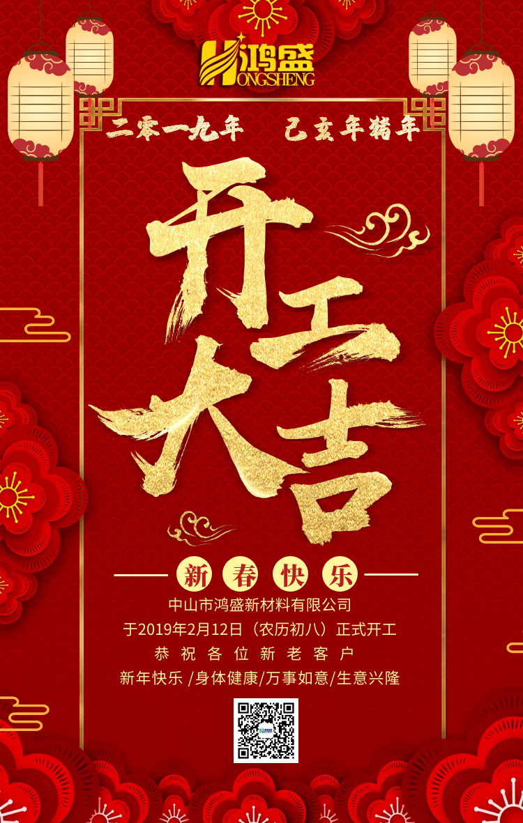 正月初八,祝福要發,愿假期的休息帶給你的是精力充沛,愿真心的祝福帶給你的是一年幸福,祝鴻盛新材全體員工開工大吉,工作順利!祝鴻盛新材新的一年生意紅紅火火!