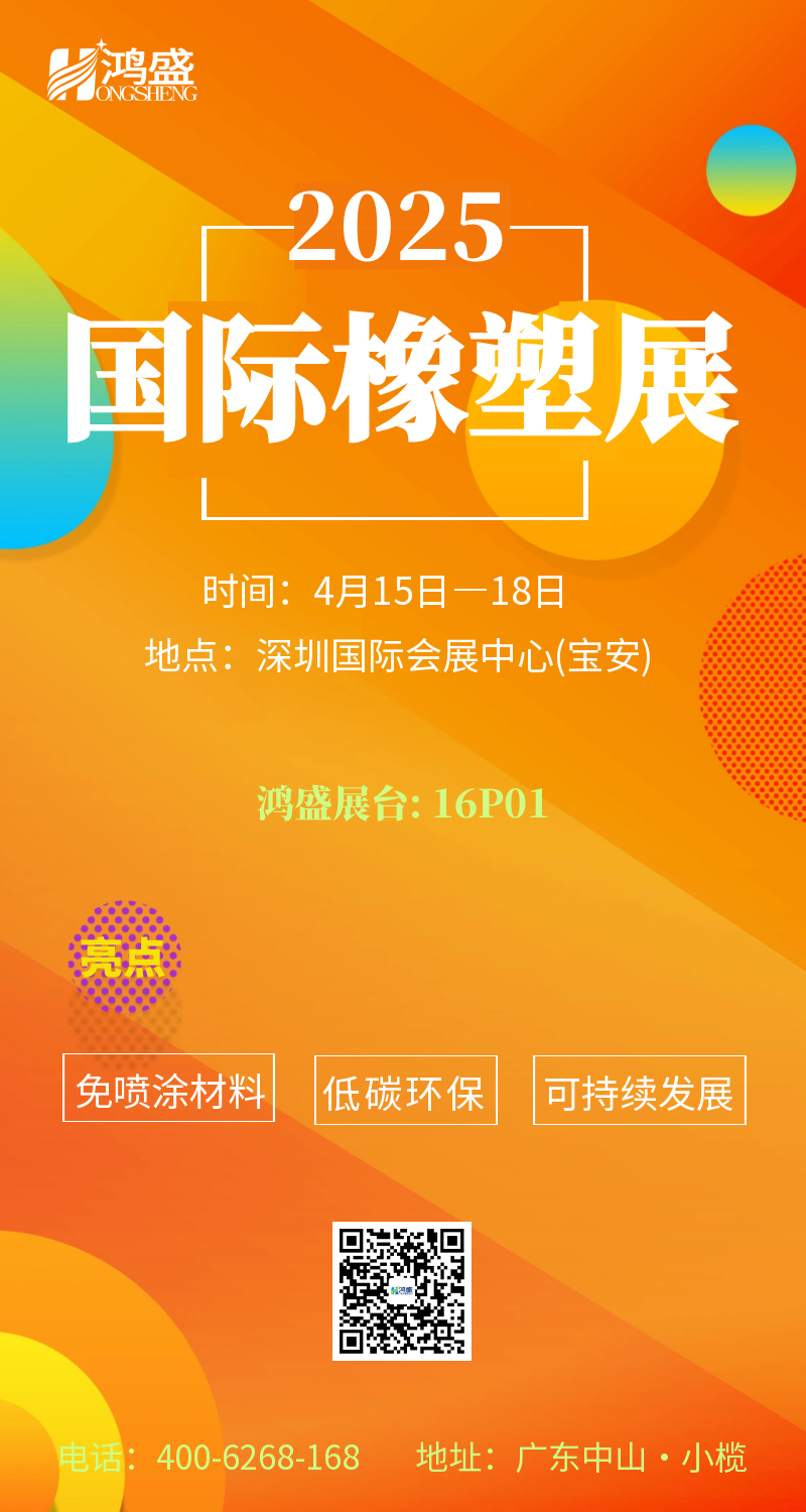 中山市鴻盛新材料作為免噴涂材料引領者將與您相約深圳國際會展中心,我們誠摯邀請您蒞臨我們的展位(展位號:16P01)參觀交流,探討綠色環保免噴涂改性材料的創新與應用,共同見證并推動橡塑行業的持續升級與創新。